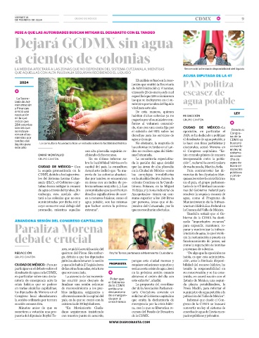 ocasión consecutiva. asistencia de 38 legisladores. emergencia por la crisis hídri- greso de la CDMX se buscará