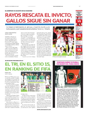 su posición entre los primeros 14. Colombia 1655.29 ● La Liga MX dio a conocer que el duelo