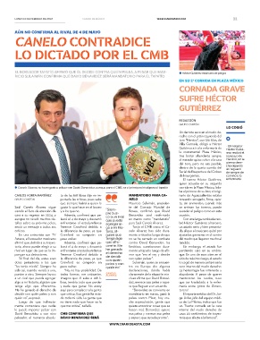 talles sobre su próxima pelea, enfrentarse al estadunidense agregar al- para Saúl Canelo Álvarez. bió Héctor Gutiérrez al tercero,