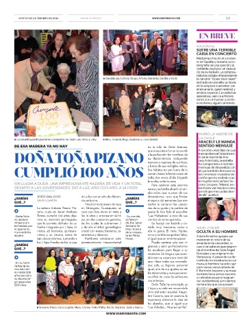 • Doña Toña Torres, cumplió 100 años; des- los 16 años y procrearon 14 hi- • Su marido, “Las Mañanitas” a coro de sus
