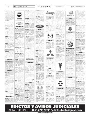 26 B! CLASIFICADOS 55.63.63.01.45 CIUDAD DE MÉXICO MARTES 20 DE FEBRERO DE 2024