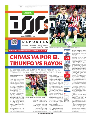 EN SU VISITA AL NECAXA, EN JUEGO ADELANTADO DE LA J9 CLAUSURA ra contra Querétaro, exten-