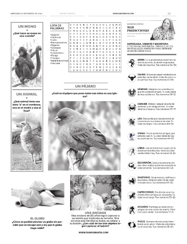 UN ANIMAL ¿Cuál es el pájaro que pone todos sus nidos en una Igle- de hoy es blanco. Tus números 99-11.