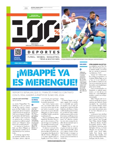 La novela Mbappé-Real Ma- Las mismas fuentes apun- en el entendido que podría apuntalaría las necesidades