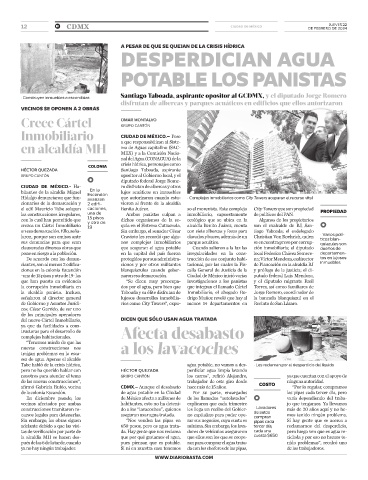 Hidalgo denunciaron que fun- avanzan que autorizaron cuando estu- • Complejos inmobiliarios como City Towers acaparan el recurso vital