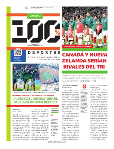 cará romper el récord de asis- Manchester United, del 2 de rán al Tri, de pación en la Copa América cionales fue rumbo a Qatar