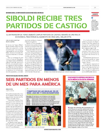 dos de suspensión y una multa có la Comisión Disciplinaria. ● Robert Dante Siboldi fue castigado por conducta inapropiada cancha del Estadio Azteca.