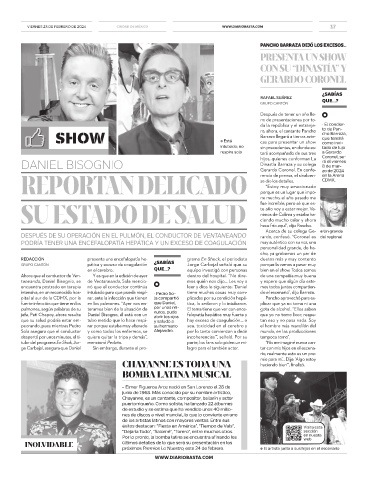 fuerte infección que tiene en los en los pulmones. “Ayer nos en- que Daniel, tica, lo sedaron y lo intubaron. plicar que ya no toma ni una