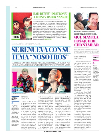 electrónico. emociones de sus fanáticos, señaló el artista argentino. mientos con artistas en pro- que ella quería”, señaló tajante,