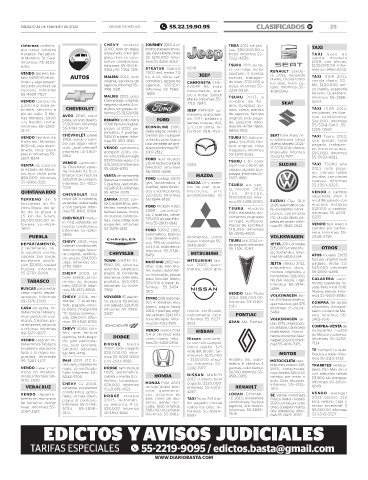 SÁBADO 24 DE FEBRERO DE 2024 CIUDAD DE MÉXICO 55.22.19.90.95 CLASIFICADOS B! 25