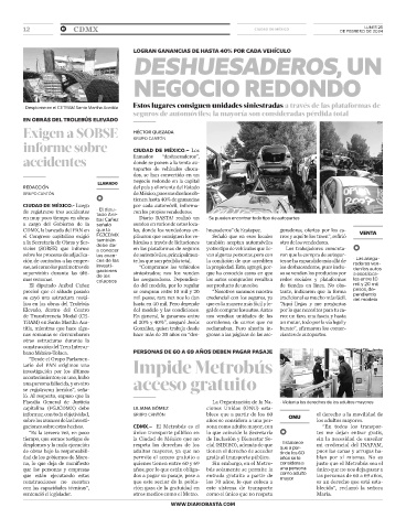 CDMX, la bancada del PAN en que la les, donde los vendedores ex- huesaderos” de Ecatepec. guradoras, ofertas por los ca- VENTA