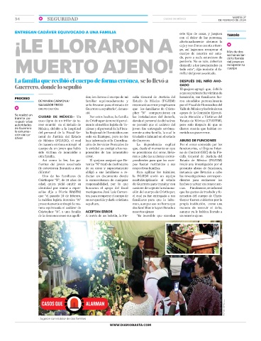 autoridades rror ocurrió en el Estado de mente al médico legista de Te- se percató que el cadáver del pero solo después de que se