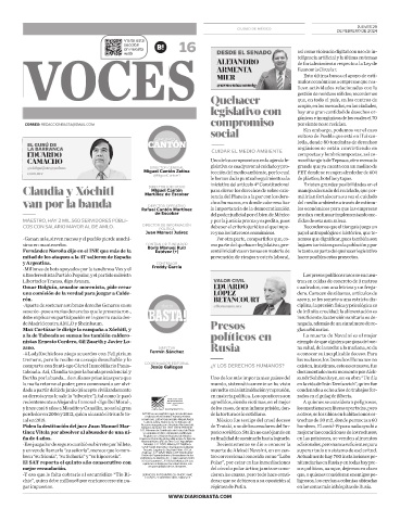 y en vez de llamarlo “su señoría”, merece que lo nom- Anáhuac. C. P. 11320 México, DF. Distribuidor: muerte de Alekséi Navalni, en un cen- superar todo un sistema de esclavitud.
