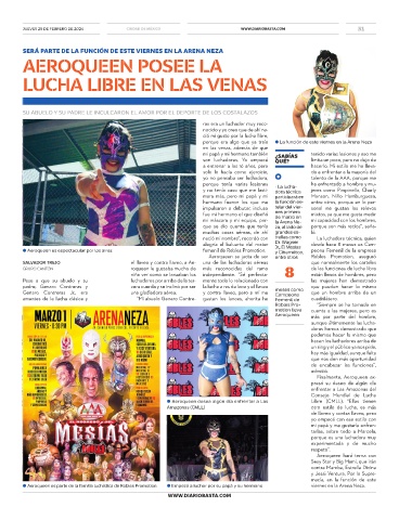 ● Aeroqueen es parte de la familia luchística de Robles Promotion ● Empezó a luchar por su papá y su hermano viernes en la Arena Neza.