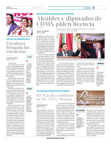 cias electorales en la contienda nes nos también ha solicitado separa- Vanegas de Milpa Alta, Sandra ra que soliciten licencia otros le-