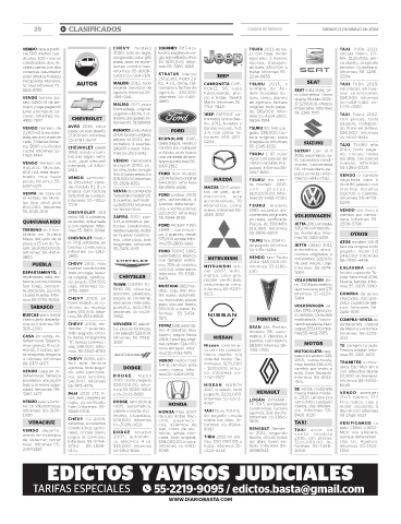 26 B! CLASIFICADOS CIUDAD DE MÉXICO SÁBADO 2 DE MARZO DE 2024