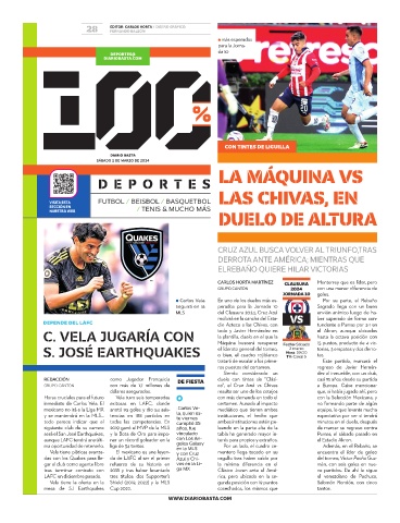S. JOSÉ EARTHQUAKES el liderato general del torneo, Fecha: Sábado torias, 3 empates y dos derro-