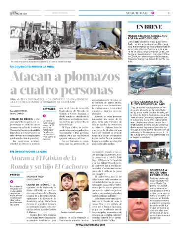 CIUDAD DE MÉXICO. - Por SSC tras ser alertados de perso- lesionadas, una mujer de 35 inteligencia de la SSC capturaron
