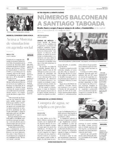 próximos años en este sector rena se sarrollo de actividades del 330 hechos ilícitos en trans- Santiago Taboada gastó 497 • Taboada