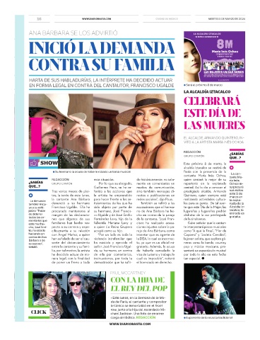 señaló. entre la cantante y su fami- señor José Francisco Ugal- gratorio. Además, lo acusa pop y música mexicana, pre-