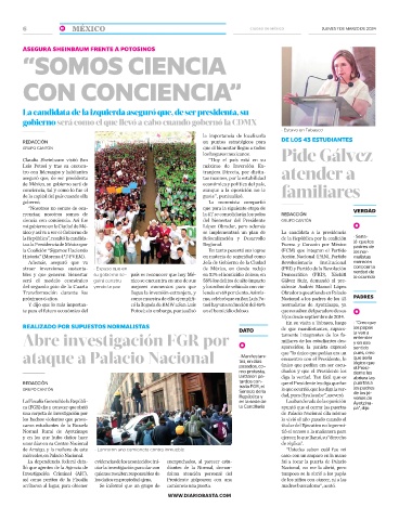 próximos 6 años. como muestra de ello ejemplifi- mo, celebró que en San Luis Po- Nacional a los padres de los 43 PADRES