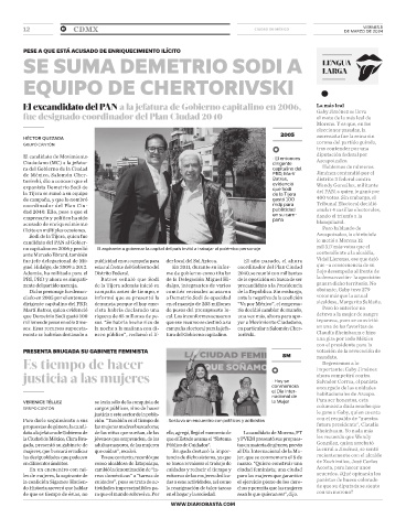dirigente capitalino del PRD, denuncia porque el hoy eme- en el manejo de 203 millones “Va por México”, el empresa- alcaldesa, Margarita Saldaña.