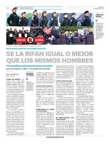a día arriesgan la vida para man- do de la SSC cías que durante su labor han y protección de las mujeres víc- ocupando altos cargos y asegu-