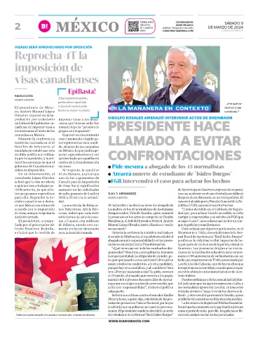 probación por la decisión imponer visas a los mexi- VIDULFO ROSALES AMENAZÓ INTERVENIR ACTOS DE SHEINBAUM
