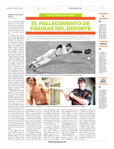 primera en Yucatán el 17 de Anaya y a Julio César Chávez. garras de los vicios, perdió boxeador que llegó a este- tremenda herida. Otra muer-