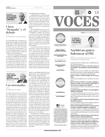 culaban en una escuela superior, se prácticas, las cuales, en buena medi- BASTA! es un periódico que circula de lunes -De qué se extraña ese científico, si Xóchitl representa