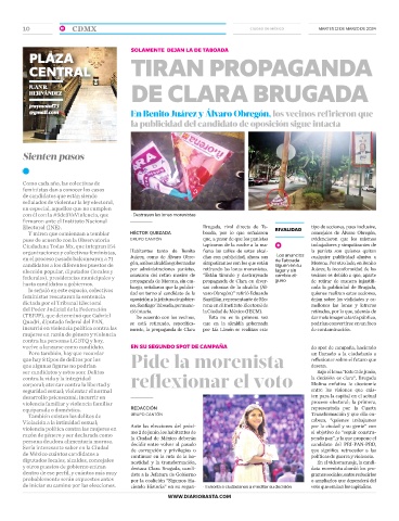hasta candidatos a gobiernos. propaganda de Morena, sin em- propaganda de Clara en diver- de retirar de manera injustifi-