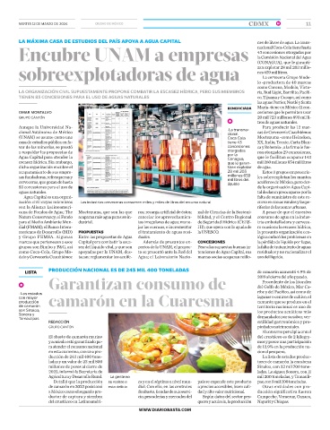delo y Cervecería Cuauhtémoc tacan: reglamentar los acuífe- Agua; el Laboratorio Nacio- marcas socias acaparan millo- uso del líquido.