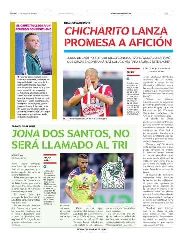 ● El Chicharito confía en levantar al Guadalajara El sábado las Chivas