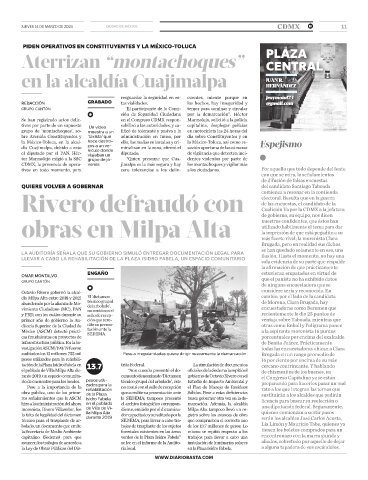 la Ley de Obras Públicas del Dis- ría local. en la Plaza Isidro Fabela. a alguna tapadera de sus escándalos.