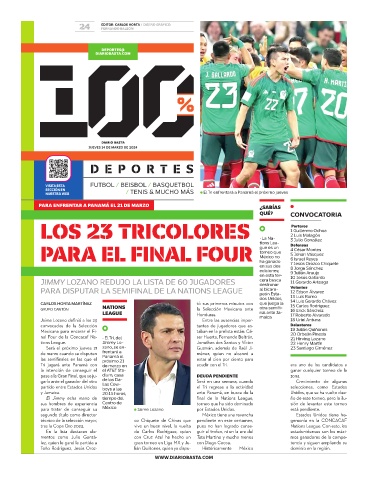 Mexicana para encarar el Fi- taban en la prelista están: Cé- 19 Julián Quiñones
