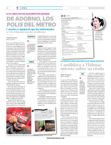 Las quejas de los usuarios del el Metro, lo que rebasa a los po- Candidata a Tláhuac