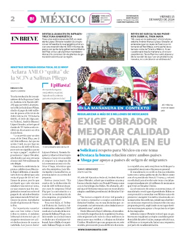 adelantó que este viernes contra de la deducción de buena relación tanto con Donald Trump como ra aproximadamente 40 millones de mexicanos