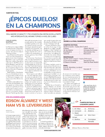 tras igualar en la ida se impu- en Madrid", dijo Guardiola es- También hay un Arsenal vs del Atlético con el Borussia • Tres españoles, dos in-