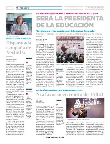 Xóchitl Gálvez, candidata de la también señaló que su motiva- • Visitó Campeche como parte de sus recorridos versales para niñas y niños de