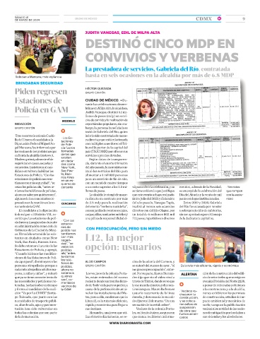 ción “Va por La CDMX” Santia- nel en las instalaciones del Me- usuario recurrente de la línea • Vecinos re- nunca exhibieron los permisos