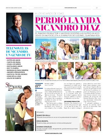 te fin sema- Díaz, quien perdió la vida a emotivas palabras al produc- asistente de producción de