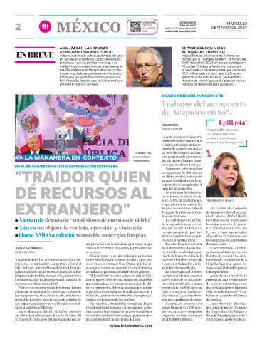 tranjeros, es un traidor a la patria”, afirmó el teos e incluso Gustavo Díaz Ordaz, quienes si- mente en anticipación a la lle- Guardia Nacional, que se es-