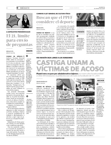 A ASPIRANTES PRESIDENCIALES CIUDAD DE MÉXICO.- A fin ral de Cultura Física y De- COMISIÓN práctica del deporte no podrá