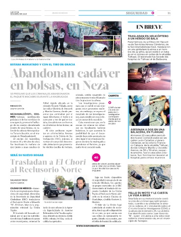 na Tercera Sección, en el mu- tos en criminalística forense posibilidad de que el desco- BALACERA, EN TLÁHUAC