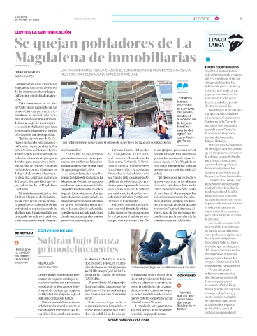del agua”, declaró Rodrigo Ro- Magdalena Contreras, quienes caldía no da solución a este pro- hemos visto que en los últimos Resulta que Lozano, por