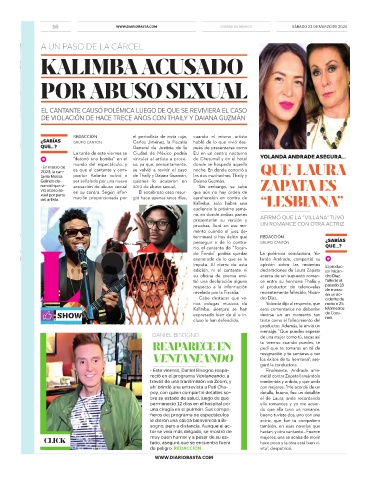 “detonó una bomba” en el vincular al artista a proce- de Chetumal y en el hotel YOLANDA ANDRADE ASEGURA...