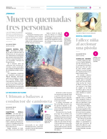 TEXCALTITLÁN tra en comunicación con las fa- sonal de los cuerpos de rescate, resultaron Fallece niña