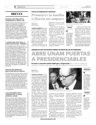 el orden de participación de las can- CIUDAD DE MÉXICO.- El rec- • Descarta la
