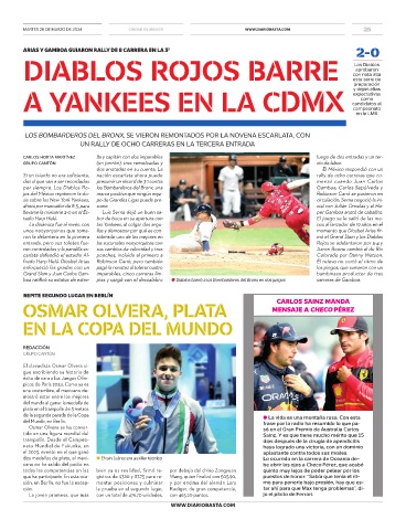 boa ratificó su estatus de estre- pias y cargó con el descalabro ● Diablos barrió a los Bombarderos del Bronx en dos juegos carreras de Gamboa.