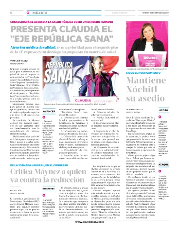 La candidata de Morena • Destacó de salud: que consiste en la sector salud. coalición “Fuerza por México”,